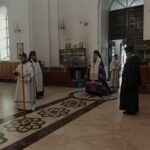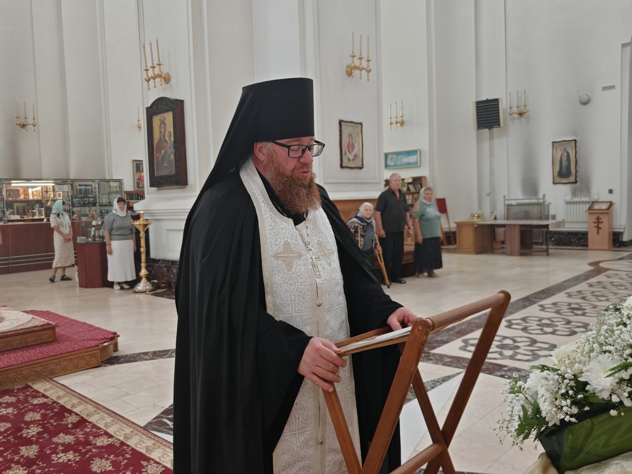 Его Преосвященству сослужили: секретарь Валуйской епархии иеромонах Андрей (Сумин) и клирики собора протоиерей Стефан Груй и диакон Александр Долгих.
